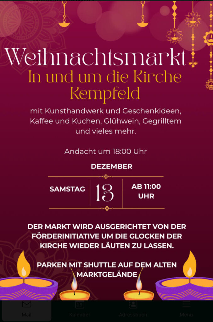 Weihnachtsmarkt rund um die Kirche mit Andacht
